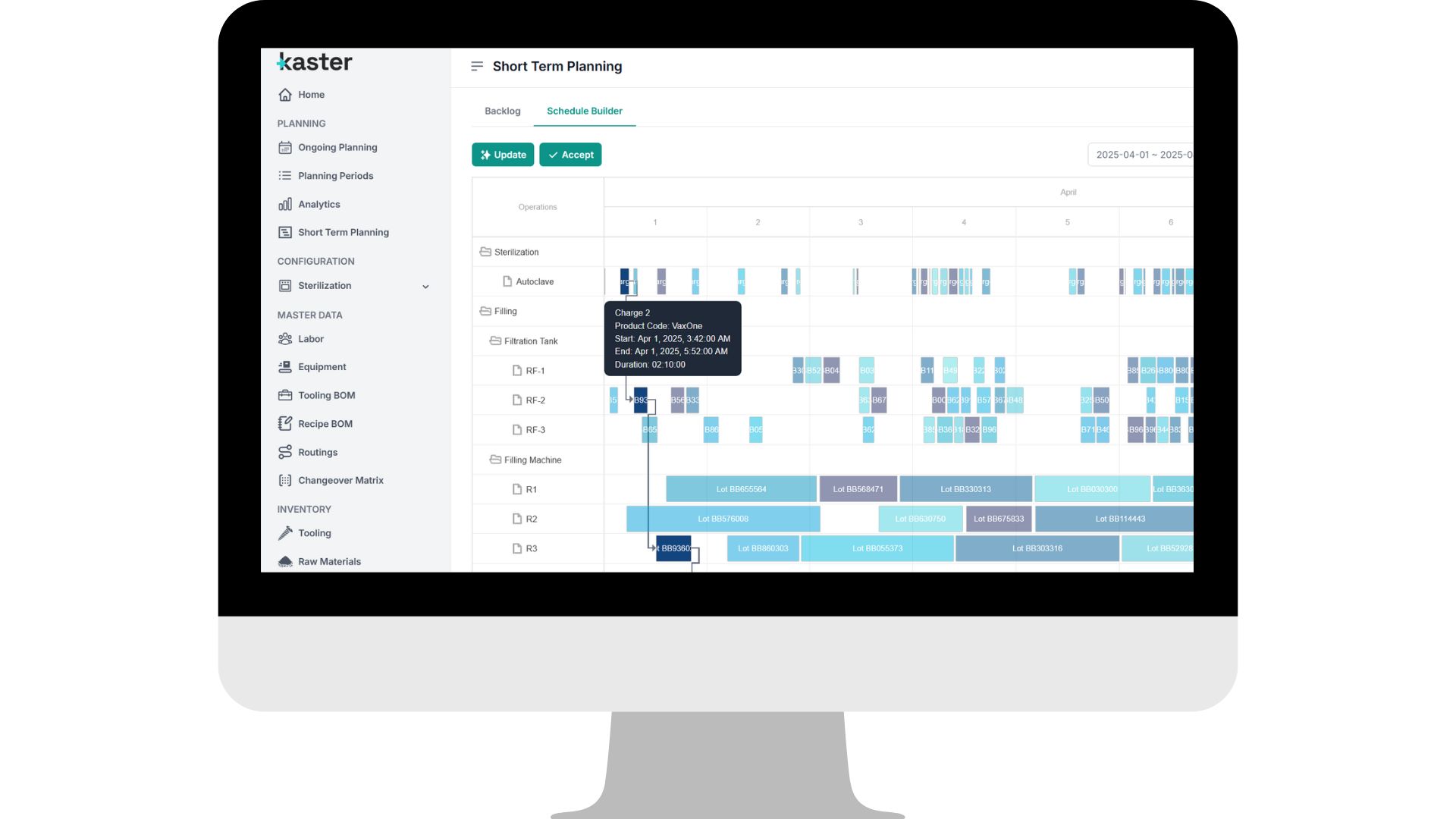 Automatically respects GMP rules, equipment constraints, and timing requirements to deliver the most efficient, compliant production sequence, every time.